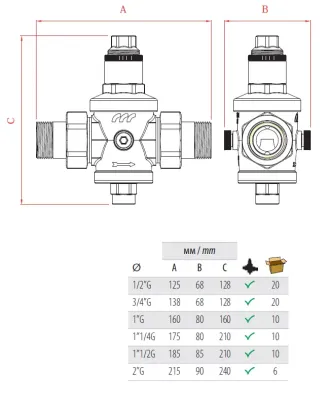 Редуктор давления увеличенной пропускной способности FARG MM - редуктор давления с американками, подходит для бытовых и промышленных систем со средними и высокими скоростями потока. Седло редуктора выполнено из нержавеющей стали.