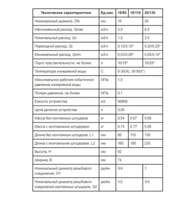 Метрологические характеристики счётчиков соответствуют ДСТУ 3580, классу В (при установке на горизонтальных трубопроводах шкалой вверх) и классу А (при установке в любом другом положении)