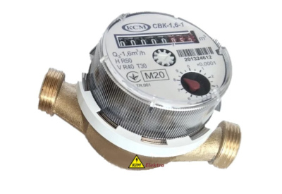 Корпус счетчика СВК-1,6 изготовлен из высококачественной латуни ЛЦ40С, в котором расположены фильтр грубой очистки и крыльчатка счетного механизма. Передача вращения от крыльчатки к счётному механизму осуществляется посредством магнитной муфты, что полностью защищает счетный механизм от попадания воды.